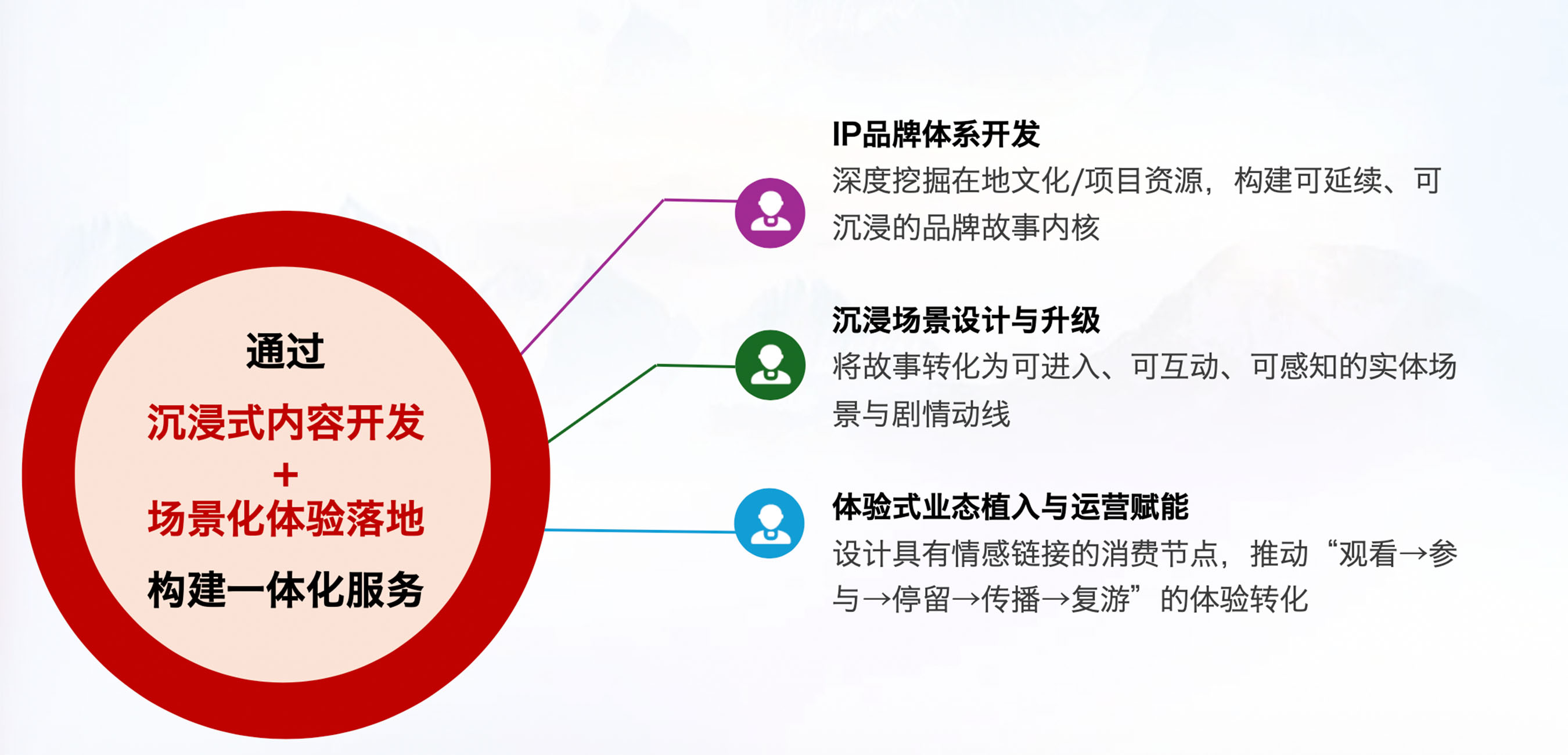 打造自有或定制专属IP, 并将其转化为可体验、 可消费的沉浸式文商旅产品。